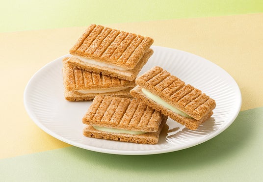 全粒粉やライ麦など7種素材の特製シリアル生地に発酵バター香るオリジナルブレンドバターとシュガーをかけあわせてこんがり焼いた、くせになる香ばしさとサクサク食感。一度食べたら忘れられなくなるミルキー感が自慢のホワイトショコラをサンドしました。