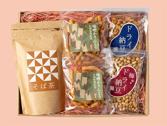 ■そば茶 ■味噌かりんとう ■ドライ納豆(しょうゆ味) ■ドライ納豆(うめ味)