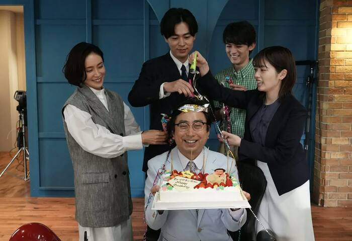 小田のバースデーサプライズは、ともに働く「シェパードキャリア」の同僚たち、成田さん、小芝さん、山口紗弥加さん、藤原大祐さんらとのオフィスでの撮影がひと段落したタイミングで行われました。