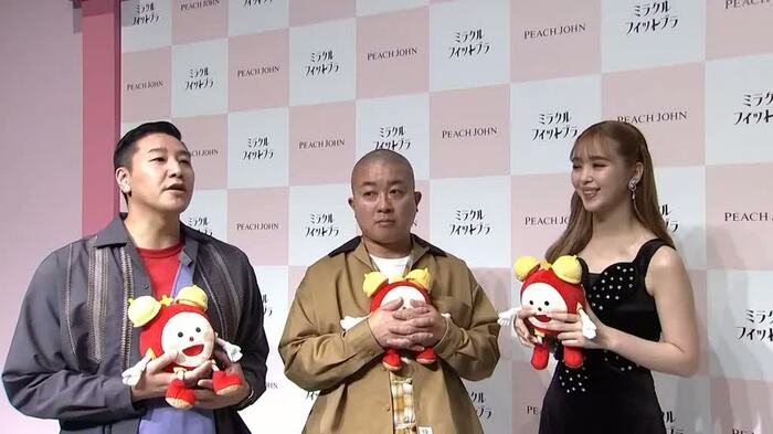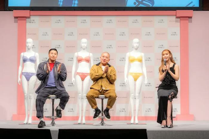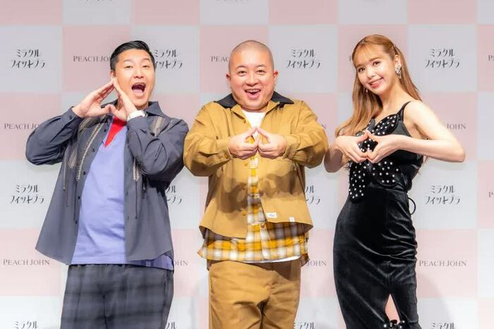 藤田ニコルさんとチョコレートプラネット(長田庄平さん、松尾駿さん)が7月26日、下着ブランドの「PEACH JOHN 新商品『ミラクルフィットブラ』発売記念イベント」に出席しました。