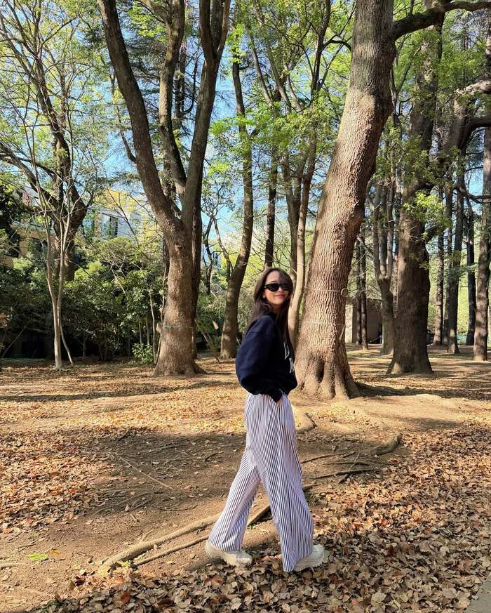 サングラスをかけ公園内を散歩しているショットでは、穏やかな笑みを浮かべた近藤さん。リラックスした雰囲気が感じられ、飾らないナチュラルな姿がとっても素敵ですね。
