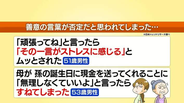 まず紹介されたのは、良かれと思って言った言葉を否定的に受け止められて戸惑ったというエピソードです。