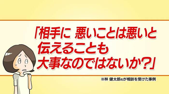 林さんは「相手の話をしっかり聞いて『この人と話すと安心できる』と感じてもらえば、もっと話してくれるようになるし、それによって関係性がまろやかになる」と、どの言葉を使うか考える以前に相手との関係性を構築することが大切だと主張。