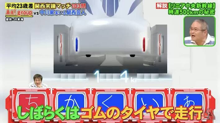 「新幹線」と名前はついていますが、乗り物としてのイメージはまったく別物。リニア中央新幹線は、出発してからしばらくはゴムのタイヤで進むのですが、時速150kmくらいまで加速するとタイヤが車両に格納されます。