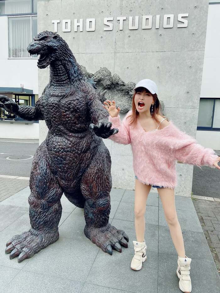 他にも、ゴジラのブロンズ像の横で、ゴジラを真似して両手を広げたポーズを見せ、今にも「ガオー」という声が聞こえてきそうな無邪気なショットも披露した平子さん。親子で過ごした時間を満喫したようですね。