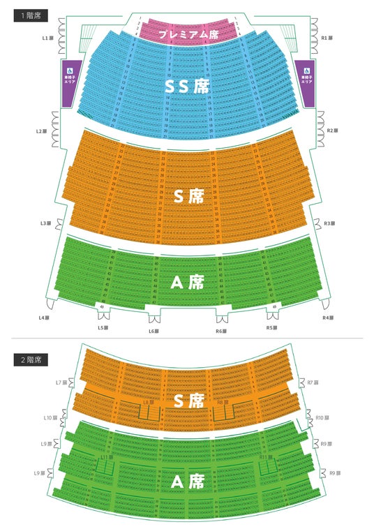 ※プレミアム席、SS席およびS席、A席は各抽選先行で予定枚数に達した場合、その後の抽選先行および一般発売での取り扱いはございません。