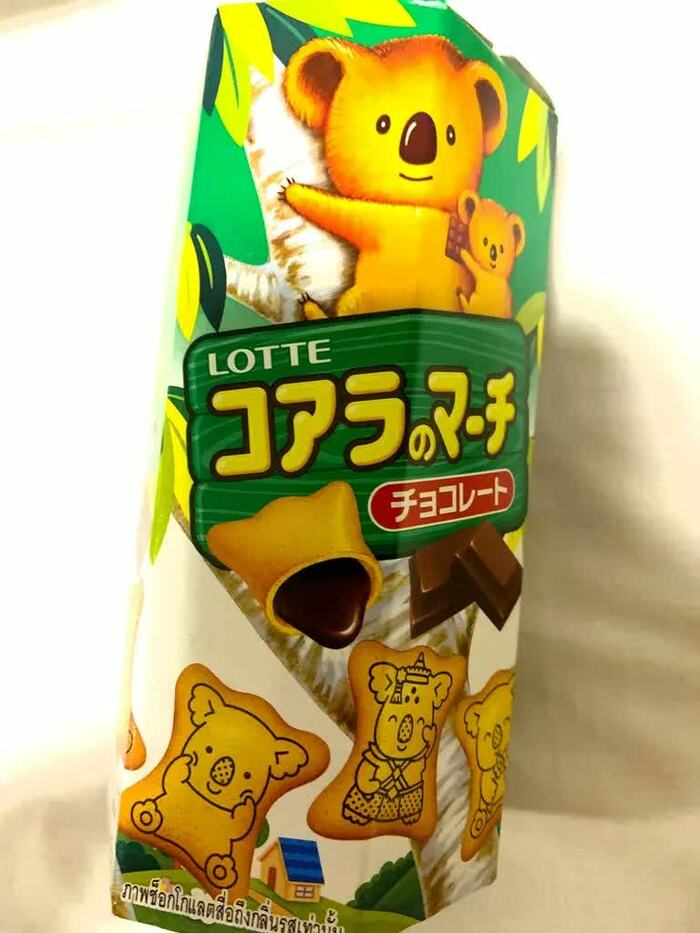 これはタイで見つけたコアラのマーチです。日本のコアラのマーチと変わらないように見えますが、よ~く見るとコアラがタイの民族衣装を着ているんです。海外にも日本のお菓子が羽ばたいていたことがうれしくて、つい買ってしまいました(笑)。