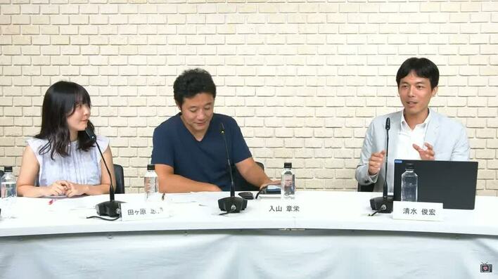 早稲田大学ビジネススクール教授の入山章栄さんとフジテレビの清水俊宏の2人がモデレーターとしてスタートした「シゴトイノベーション」のセッション。