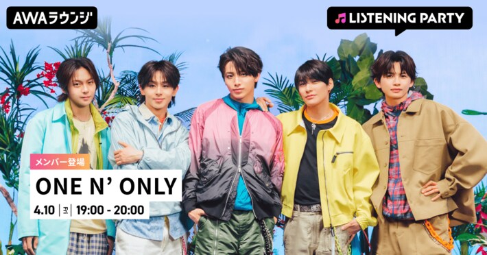 AWA株式会社(本社:東京都港区、代表取締役CEO:冨樫晃己)が運営する、サブスクリプション型(定額制)音楽ストリーミングサービス「AWA(アワ)」は、2026年4月10日(金) 19:00~20:00にて、無料で誰でも参加できるオンライン空間「ラウンジ」で、ONE N' ONLYのメンバーが音声とチャットで登場するリスニングパーティーを開催いたします。