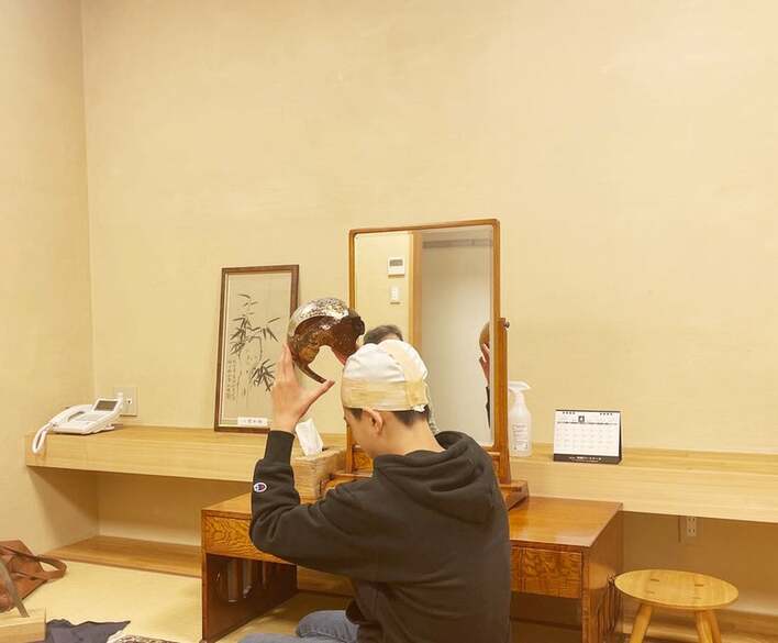 そして、いざ羽二重の上から頭の形に合わせた銅版をかぶろうとしている姿からは、真剣さが伝わってきますね。