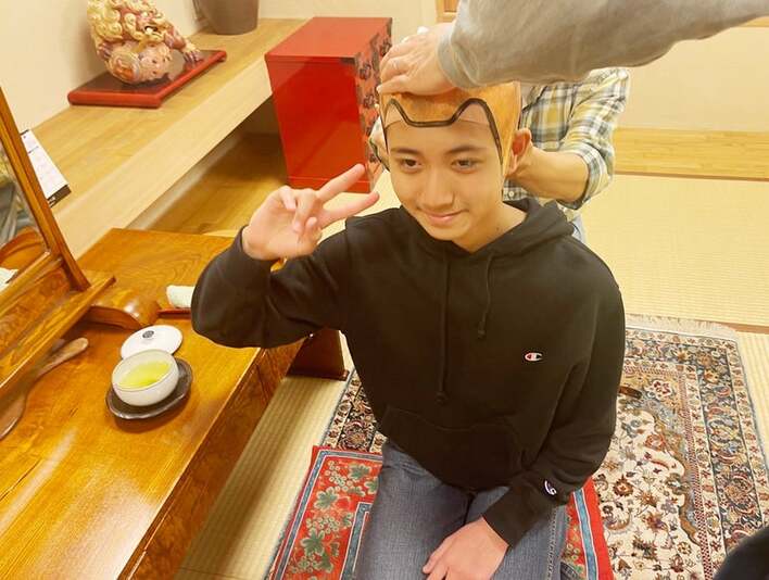 この日、市川さんは歌舞伎の演目「助六」で口上を務める新之助さんのカツラ合わせに同行していたようで、スタッフが新之助さんの頭に手を当て、頭のサイズを確認している様子を公開しました。新之助さんは、座布団の上で正座をしまっすぐ前を見つめてピースサインをしていて、リラックスした雰囲気が漂っています。
