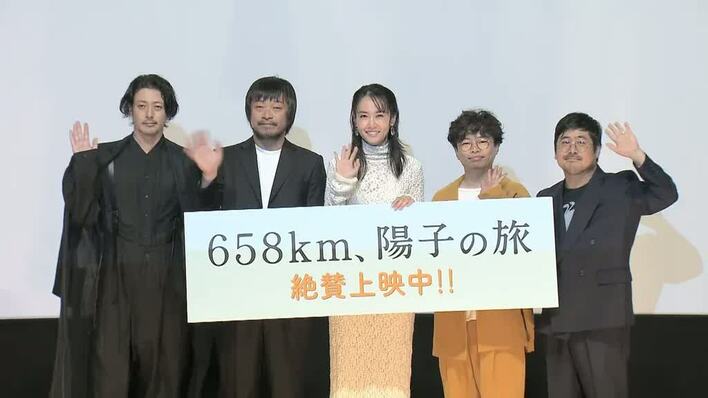 菊地凛子さんが主演を務める映画「658km、陽子の旅」の公開記念舞台挨拶が、7月29日に行われ、菊池さん、竹原ピストルさん、浜野謙太さん、オダギリジョーさん、熊切和嘉監督が登壇しました。