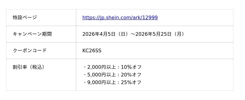 (特設ページ:https://jp.shein.com/ark/12999)