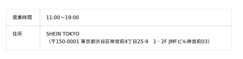 <SHEIN TOKYO概要・アクセス>