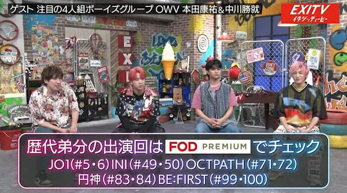これまで番組に登場した数々のボーイズグループの“公式お兄ちゃん”を務めているEXITは、当然のように、「僕らが公式お兄ちゃんでいいの?」と尋ねますが、本田さんは、「僕ら吉本興業所属なんで」と、OWVとEXITは同じ事務所だと返答。