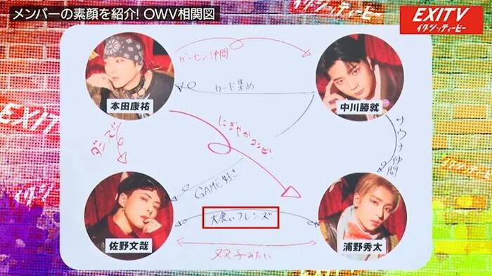 番組後半では、OWVのメンバーを相関図形式で紹介されました。