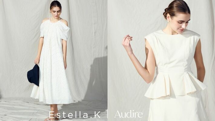 コラボレーションドレス2型を発売。Estella.K が得意とするエレガントで洗練されたデザインと、シーンレスで凛としたスタイルを叶えるAudireらしさを融合。リゾートからデイリーまで幅広い年代へ。