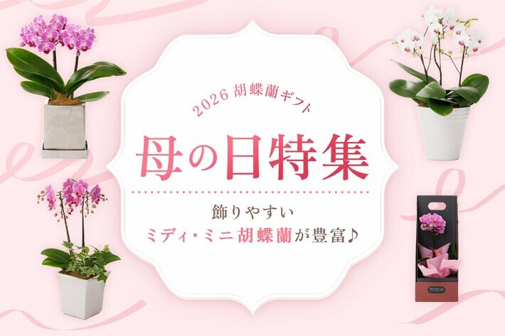 今回の特集では、やさしく華やかな印象のピンク系を中心に、飾りやすいミディ・ミニ胡蝶蘭を豊富にご用意。産地直送ならではの鮮度と品質にこだわった胡蝶蘭を、母の日の贈り物としてご提案いたします。