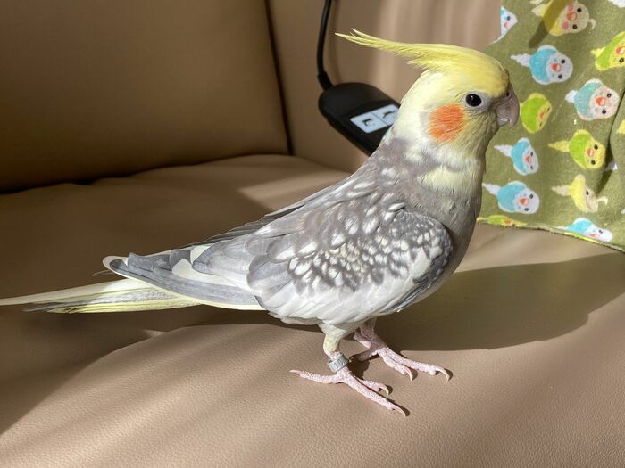 姿勢良く立つのは、オカメインコの「ナギ」くん、5歳の男の子。