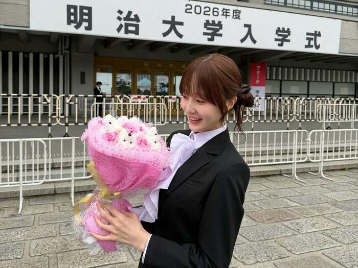 SNSからは「おめでとうございます!」「友達沢山できるといいですね」「ステキな写真で癒やされます」「まりんちゃんの後輩だ〜」「大学生活楽しんでください♡」「明治なの!一緒!うれしい!」など注目の声が寄せられています。