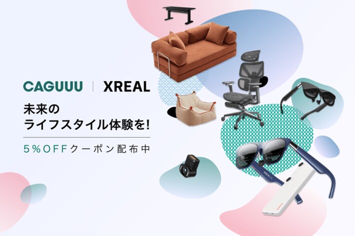 AR(拡張現実)グラスを開発・販売しているXREALは、家具ブランド「CAGUUU(カグー)」を展開するCAGUUU株式会社とのブランドパートナーコラボレーションを、2026年4月10日より開始いたします。これを記念し、CAGUUU公式オンラインショップで利用可能な5%OFFクーポンを配布いたします。
