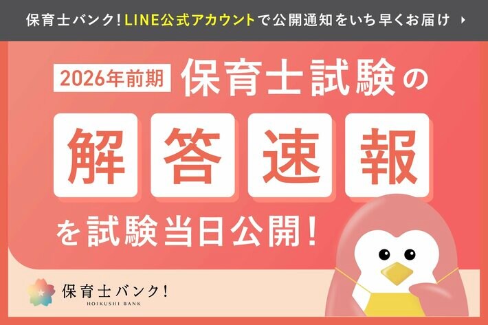 事前に保育士バンク!公式LINE友だち追加すると、当日の解答速報が公開された瞬間に、保育士バンク!公式LINEからプッシュ通知でいち早くお知らせします。