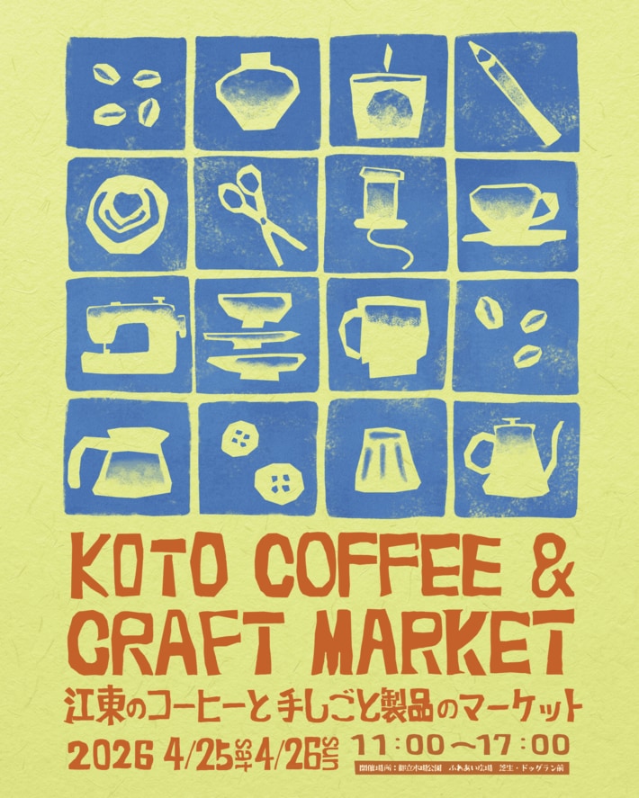 都立木場公園にある飲食施設Park Community KIBACO(キバコ)は、江東のコーヒーと手しごと製品を展開するイベント「KOTO COFFEE & CRAFT MARKET」を、2026年4月25日(土)と26日(日)の2日間開催します。江東区内や近隣エリアのスペシャルティコーヒーショップによるコーヒーホッピングや、江東区内の作り手たちによるスイーツ・パン・雑貨類などのクラフトマーケット&子どもから大人まで楽しめるワークショップの開催、キッチンカーによる飲食の販売など多様なマーケットとなっております。新緑が目に眩しい季節、木場公園 ふれあい広場にてお好みのコーヒーとともに心落ち着くひと時をお過ごしください。