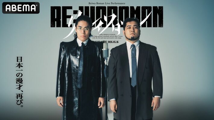 新しい未来のテレビ「ABEMA」は、お笑いコンビ・令和ロマンが2026年5月16日(土)にKアリーナ横浜で開催する7年ぶりの単独ライブイベント『RE:IWAROMAN』を「ABEMA PPV」にて生配信することを決定いたしました。