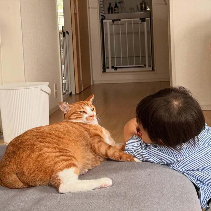 にゃんこと小さな子供のキュートな絡みに思わず癒されちゃう!