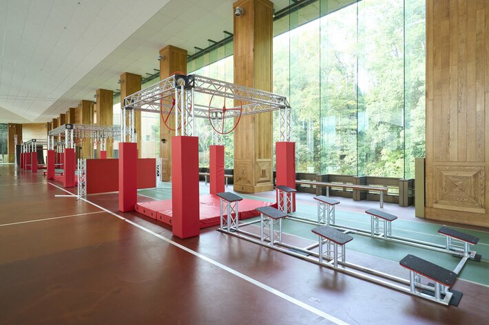 近代五種は、フェンシング、水泳、レーザーラン(ランニングと射撃)の4種目に加え、新たに障害物を越えて進む「オブスタクル」が採用されることが決定しています。2023年4月に「ナショナルトレーニングセンター競技別強化拠点」にも指定されているリソルの森では、2025年1月、MTC内に、近代五種の新競技に採用され注目を集める「オブスタクル」近代五種コースを国内で初めて新設しました。本コースは、天候を気にせずご利用いただける国内初(※)の屋内型「オブスタクル」日本近代五種協会公認コースとなっており、国内外のトップアスリートたちの練習拠点にもなっています。※自社調べ(国内初の「オブスタクル」日本近代五種協会公認コースとして。2024年12月)