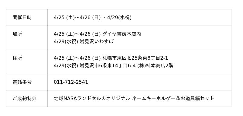 ランドセルの企画・販売を行うCHIKYU株式会社(東京都港区、代表取締役:辻谷安央)は、北海道・ダイヤ書房にて「地球NASAランドセル(R)受注会」を開催いたします。