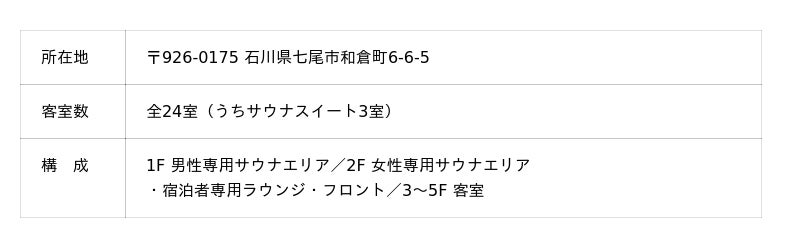 JR七尾線「和倉温泉」駅より車で約5分/能越自動車道「和倉IC」より約5分/のと里山空港より車で約50分その他