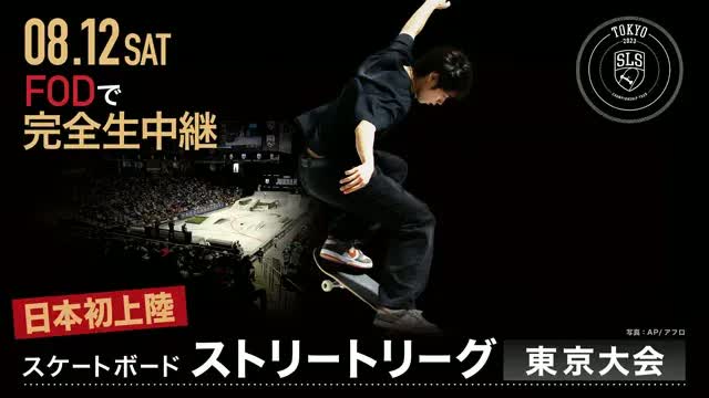 8月12日(土)12時から開催される「2023 SLS CHAMPIONSHIP TOUR – TOKYO presented by Nikon」を、『スケートボード ストリートリーグ東京大会』として、FODでLIVE配信することが決定しました。