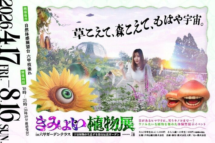 六甲山観光株式会社(本社:神戸市灘区 社長:妹尾昭孝)が運営する六甲ガーデンテラスは、2026年4月17日(金)~8月16日(日)にかけて「きみょい植物展in六甲ガーデンテラス ~宇宙植物が生息する都市伝説ガーデン~」を開催します。