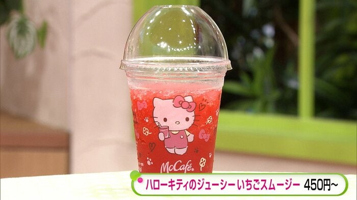 さらに、ハローキティとコラボした「ハローキティのジューシーいちごスムージー」も10日から販売スタート。ハローキティの赤いリボンをイメージしたカラーで、いちごのジェラートを食べているかのようなジューシーさが楽しめるということです。