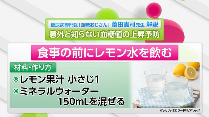 レモン特有の酸味と苦み、これがまず食欲を少し落としてくれるのと、さらにレモンにはクエン酸とポリフェノールが入っていますので「血糖値スパイク」を起こしにくくする効果があります。食前がベストです。レモン果汁でも大丈夫です。