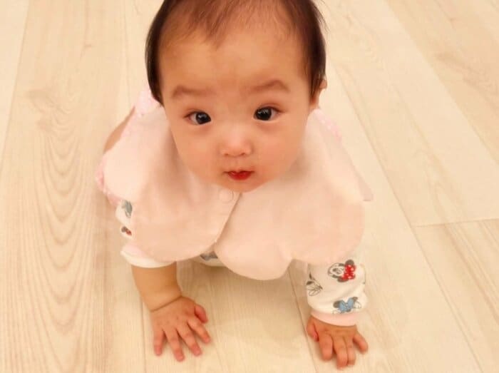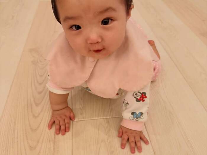 さらに、「ハイハイも上手になってきたねぇ 可愛い〜」と親心あふれるコメントとともに、ハイハイをする瞬間を捉えた写真も披露。