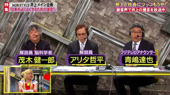 実は、この日の放送は、井上さんの提言とスタジオの反応に対し、ワイプで、別室からの実況&解説を加えるという仕掛け(主音声で、実況&解説が、副音声で井上さんとスタジオのやりとりを放送)がなされていました。