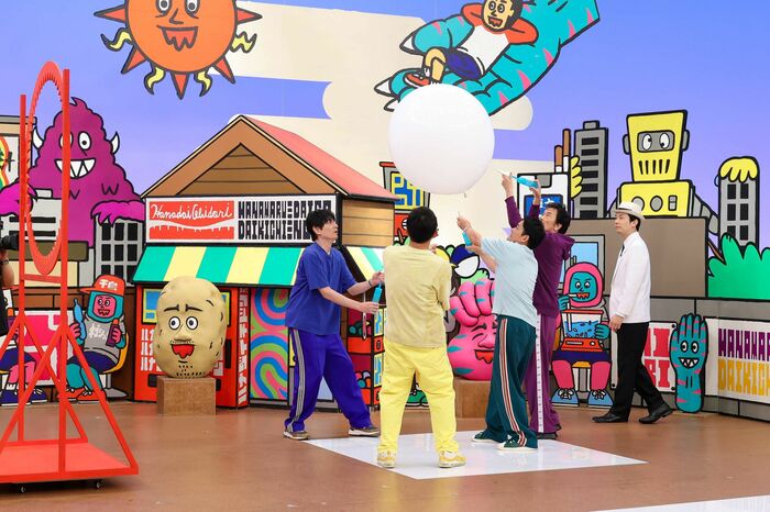 池田さん以外、体力的な問題が心配されましたが、なんとか風船をうまく運び、1組目(池田さん、大悟さん、ノブさん、山内さん)が3ポイント、2組目(遠藤さん、華丸さん、大吉さん、ノブさん)が2ポイント獲得。