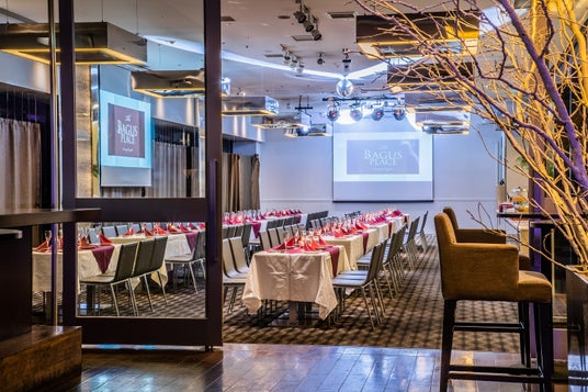 伝統と最先端が共存する街「銀座」。ここに誕生したTHE BAGUS PLACEは、「大人が楽しむ銀座の遊び場」として多くの方々にご愛顧いただいております。店内にはダーツやシミュレーションゴルフ、カラオケルームが完備されている他、2フロアに配置されたイベントスペースでは、結婚式2次会や企業パーティー、企業イベントなど、様々なシーンでご利用いただいております。「空間・食を愉しみ、遊びに興じる」そんな優雅な時間をTHE BAGUS PLACEは皆様にご提供いたします。