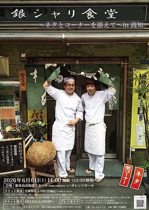 全国各地で完売御礼が続く大人気お笑いライブ「銀シャリ食堂」が、ついに高知へ上陸します。