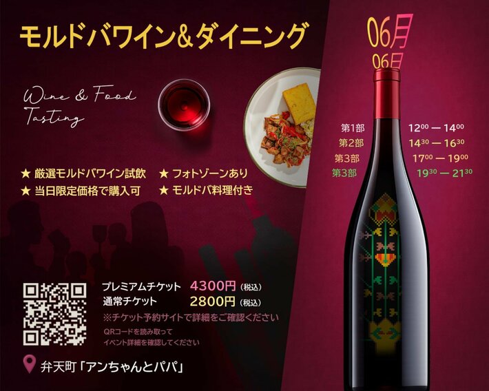2026年6月6日(土)に大阪・弁天町「アンちゃんのカフェ」にて、「モルドバワイン&ダイニング」を開催いたします。