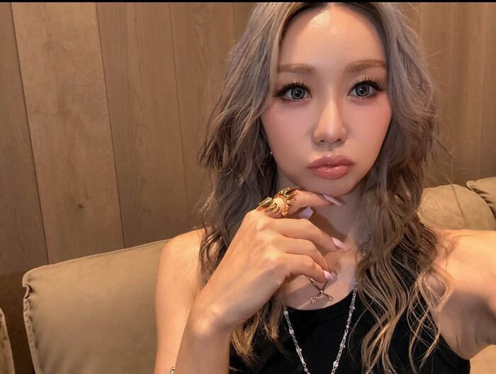 また、唇を尖らせて手を顎に添えた、おちゃめな自撮りショットも公開。グレーのカラコンに加え、長いまつ毛とぷっくりとした涙袋で目力が抜群!尖らせた唇もツヤツヤでセクシーな雰囲気が漂っています。