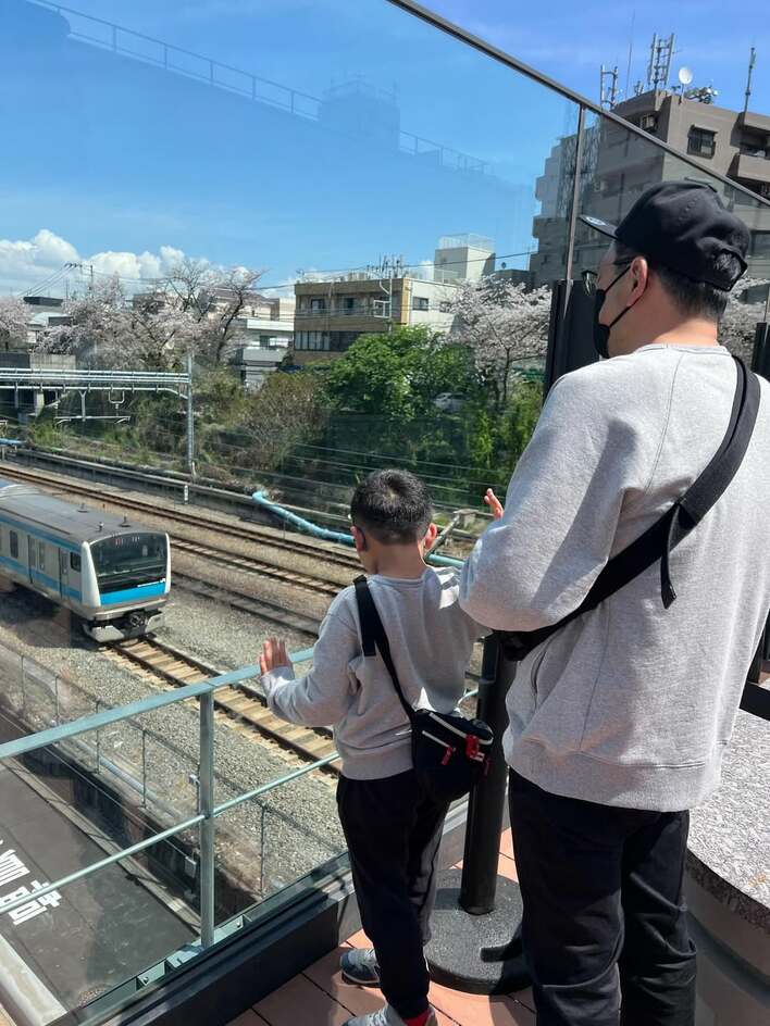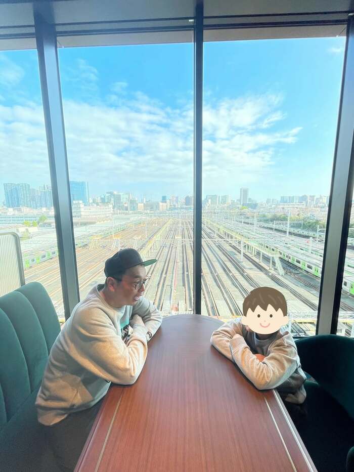 施設からは、水色のラインが印象的な京浜東北線が走る景色を一望。公開された写真には、晴れ渡る空の下、夢中で列車を眺める礼二さんと息子の後ろ姿が写し出されており、その微笑ましい光景が印象的です。