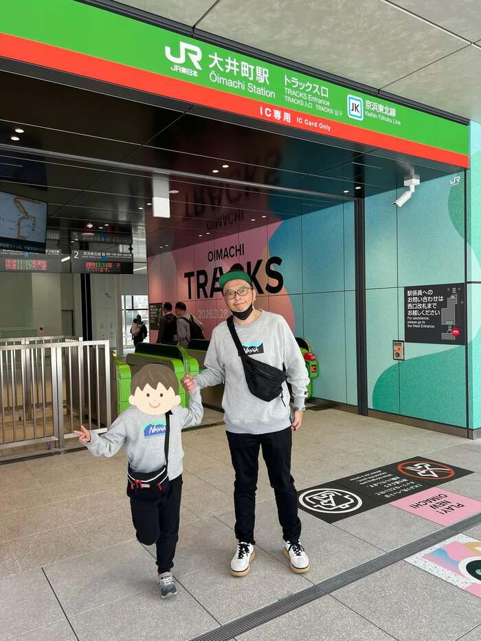 礼二さんは「3月28日にオープンしたばかりの大井町トラックスに息子と一緒に行きました」と東京・大井町に新しくできた施設に息子と訪れたことを報告。大井町駅の改札前でペアルック姿の親子2ショットを公開しました。鉄道好きにはたまらないスポットということもあり、2人の高揚感が伝わってきます。