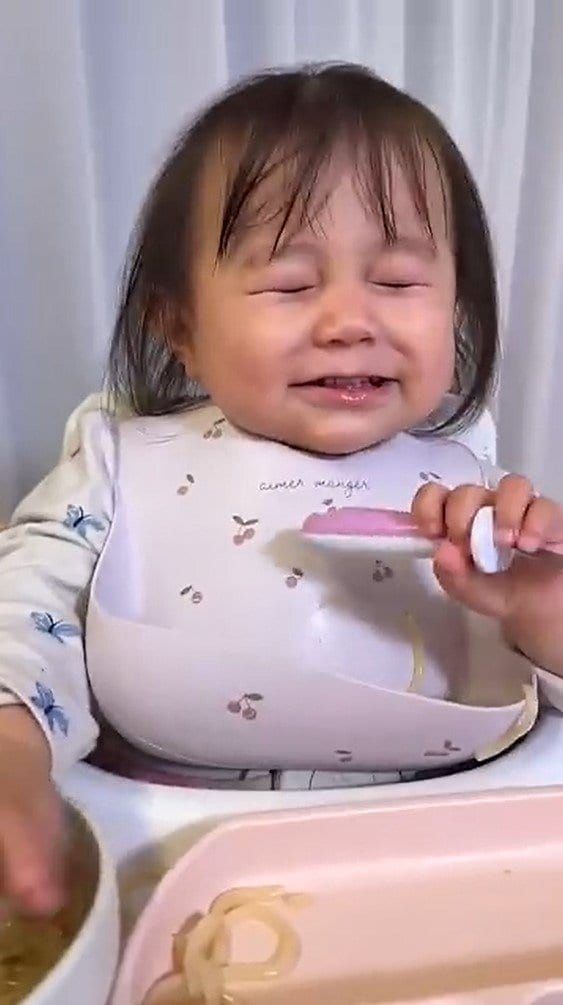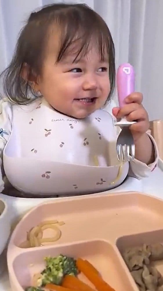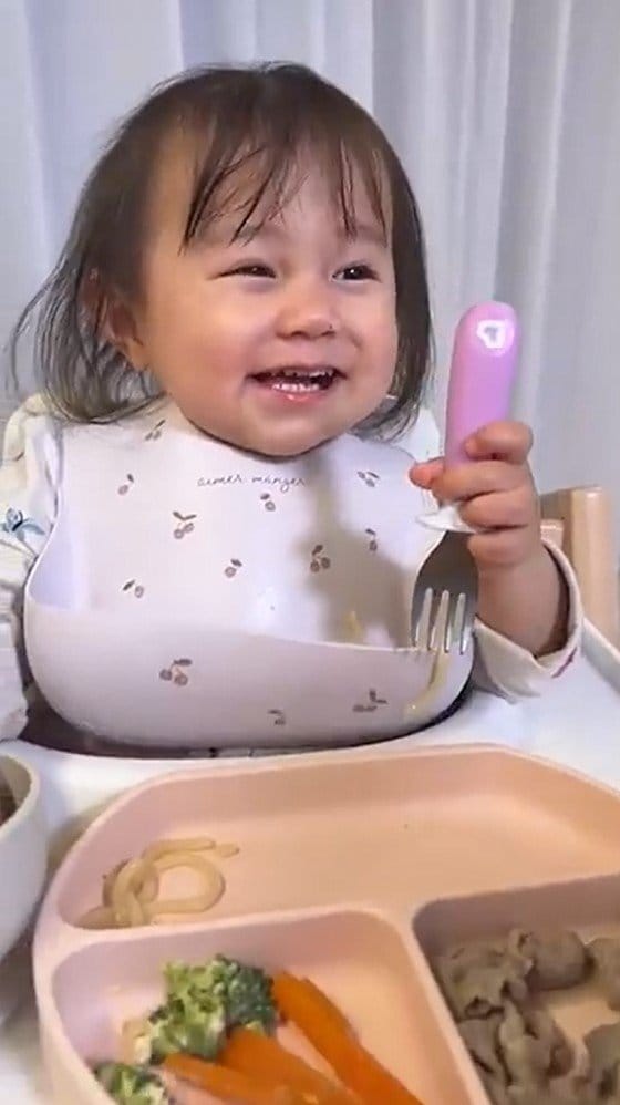 公開された動画を見てみると、フォークを持ち、ごはんを食べているにこりちゃんの姿が。にこりちゃんは、西野さんに向かって「ママ~!ママ~!」と声をかけると、次の瞬間・・・!