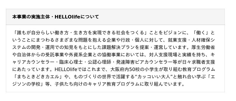 NPO法人HELLOlife 【担当:田川】 TEL:06-6147-3286 E-MAIL:info@hataraku-freeschool.jp