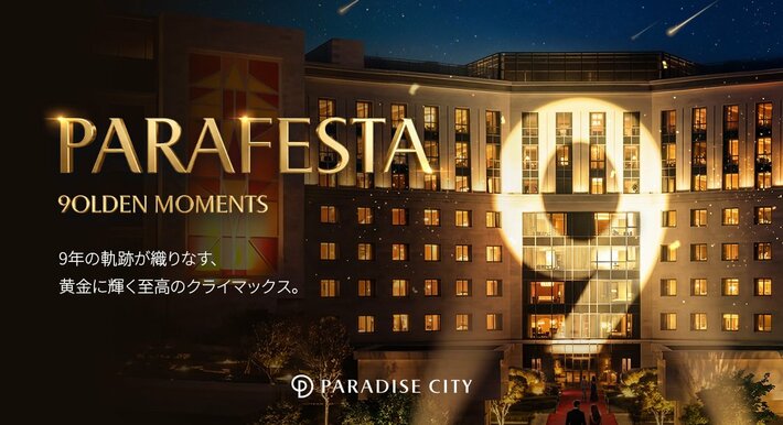 株式会社パラダイスセガサミーが展開するアートテインメントリゾート「パラダイスシティ」は、開館9周年を記念したキャンペーン「PARAFESTA - 9OLDEN MOMENTS(パラフェスタ ー ゴールデンモーメンツ)」を、2026年4月13日(月)から4月30日(木)まで開催します。