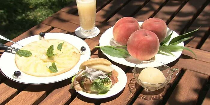 桃の様々な味わい方を堪能し、「どんなかたちでも(桃を)食べていけるんですね」と感心した松岡さんに、「挑戦する価値がある、桃は私にとって宝物」と麗子さんは挑戦し続ける姿勢を伝えました。