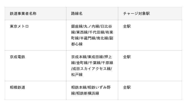 第一弾として「東京メトロ」「京成電鉄」「相模鉄道」の3事業者における全駅を対象スポットとして追加します。また、2026年秋頃までに順次、対象路線を拡大します。